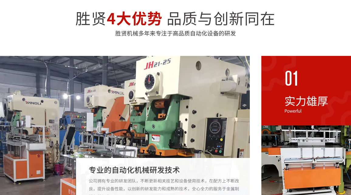 東莞市勝賢機械設備有限公司,是一家專業從事金屬制罐包裝行業的整套自動化設備和模具開發(fā)、制造與銷售的公司,擁有成熟的技術和創新開發(fā)能力。我們擁有有一批多年從事設計、研究開發(fā)的工程師,和設備、模具制作的技術人才。不斷推進制罐行業向高效、環(huán)保、節(jié)能、操作簡易化的方向發(fā)展。